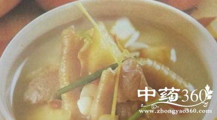 1、食材:苹果2个,猪瘦肉250克,鲜鸡爪150克,南北杏、枸杞子、葱、姜适量