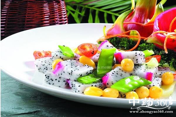 火龙果的热量既然这么低,那我们就来了解下红龙果的健康烹调吧。火龙果里面的叶酸很容易分解,所以我们最好将他直接食用,将火龙果去皮切成小块,配合杨桃等水果,配合上一层淡淡的沙拉酱,美味的火龙果沙拉就制作完成了。火龙果因为其果肉有一定的驱虫性,少虫害,所以一般不会打农药,所以很健康哦,我们可以放心食用。