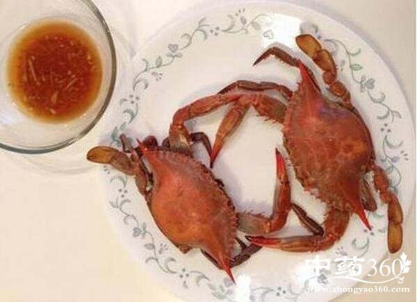 由于螃蟹性寒,故爆炒螃蟹时是加姜、葱、蒜调料驱寒去腥,而吃清蒸螃蟹时要在醋中加适量切成碎末的生姜,蘸而食用之。一来可抵消螃蟹的寒性,起到杀菌作用,二来蟹肉蘸醋可以去腥并增加螃蟹的鲜味。如果有的人不喜欢醋酸味可以在醋中加些糖提高口感。
