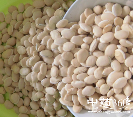 一种农作物,可晒干,炒后可食用。白扁豆味甘,性微温,有健脾化湿,利尿消肿,清肝明目等功效。一年生缠绕草本,种子扁椭圆形或扁卵圆形,长0.8~1.3cm,宽0.6~0.9cm,厚0.7cm。表面淡苋白色或淡黄色,平滑,略有光泽,一侧边缘有隆起的白色半月形种阜。质坚硬,种皮薄而脆,子叶2,肥厚,黄白色。气微,味淡,嚼之有豆腥气。