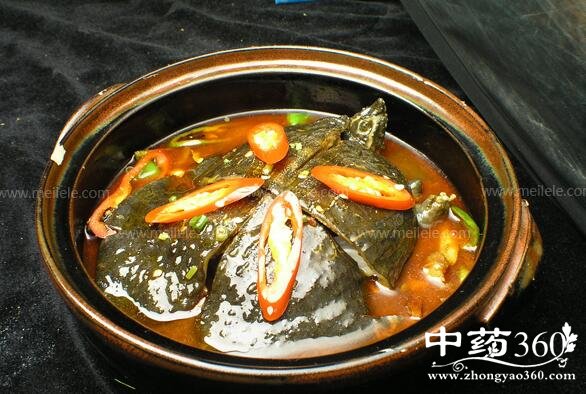 祖国医学认为,鳖肉味甘,性平。功效滋阴清热、补肾健胃、滋肝益气、凉血养血,适用于身体虚弱、肺结核、肝脾肿大等症。《名医别录》、《备急千金要方》、《食疗本草》、《日华子本草》、《日用本草》、《本草纲目》、《本草备要》、《随息居饮食谱》等医著中均有记载。鳖甲分为生甲和炙甲两种,有滋阴、健肾、壮骨、散结、消痞等功效,适用于散淤血、调月经、消脾肿、除痨热。用鳖甲熬制的鳖甲胶,能滋阴补肾,适用于肾亏、遗精、虚弱、头晕等症。