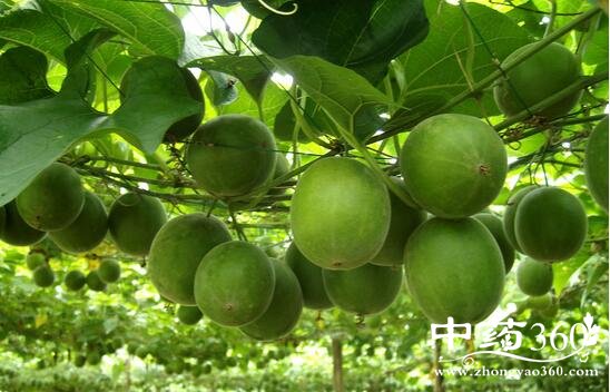 罗汉果的一种名贵药材,性凉味甘,功能清肺润肠。主治百日咳、痰火咳嗽、血燥便秘等症;对于治疗急性气管炎、急性扁桃体炎、咽喉火、急性胃炎都有很好的疗效,用它的根捣碎,敷于患处,可以治顽癣、痈肿、疮疖等;果毛可作刀伤药;用罗汉果少许,冲入开水浸泡,是一种极好的清凉饮料,既可提神生津,又可预防呼吸道感染,常年服用,能延年益寿。罗汉果汁还可用于烹调,清香可口,罗汉果被人们誉为“神仙果”。