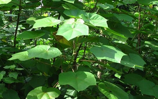 【原形态】昂天莲 灌木,高1-4m。幼枝密被星状茸毛。叶互生;叶柄长1-10cm;托叶条形,长5-10mm,脱落;叶片心形或卵状心形,有时为3-5浅裂,长10-22cm,宽9-10cm,先端急尖或渐尖,基部心形或斜心形,上面无毛或被稀疏的星状柔毛,下面密被短茸毛;基生脉3-7条,叶脉在两面均凸起。聚伞花序具1-3朵花,萼片5,披针形,近基部连合,长15-18mm,两面均密被柔毛;花瓣5片,红紫色,匙形,长达2.5cm,先端急尖或钝,基部凹陷且有毛,与退化雄蕊的基部连合;发育雄蕊15,每3枚集合成1束,在退化雄蕊的基部连合并与退化雄蕊互生,退化雄蕊5,近匙形,两面均被毛;子房长圆形,长约1.5mm,略被毛,子房5室,有5条沟纹,长约1.5mm,花柱三角状舌形,长约为子房的1/2。蒴果膜质,倒圆锥形,直径约3-6cm,被星状毛,具5纵翅,边缘有长绒毛,先端截形。种子多数,长圆形,黑色,长约2mm。花期春、夏季。