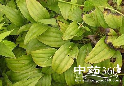 2.蔓生百部 多年生草本,高60-90cm。全株无毛。根肉质,数个至数十个簇生。茎下部直立,上部蔓状。叶3-4片轮生;叶柄长1.5-3cm;叶片卵形或卵状披针形,长4-9cm,宽1.8-4cm,先端锐尖或渐尖,基部圆形或截形,全缘;叶脉5-9条。花梗丝状,长1.5-2.5cm,其基部贴生于叶片中脉上,每梗通常单生1花;花被4片,淡绿色,卵状披针形至卵形;雄蕊4,紫色,花丝短,花药内向,线形,先端有一箭头状附属物;子房卵形,甚小,无花柱。蒴果广卵形面扁,内脏长椭圆形种子数颗。花期5月,果期7月。