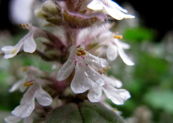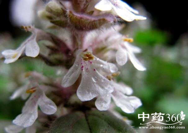 【原形态】多年生草本,高10-30cm。茎基部倾笛或匍匐,上部直立,多分枝,四棱形,略带紫色,全株密被白色柔毛。单叶对生,具柄;叶片卵形或长椭圆形,长4-11cm,宽1-3cm,先端圆钝或短尖,基部渐窄下延,边缘有波状粗齿,下面及叶缘常带有紫色,两面有短柔毛。轮伞花序,多花,腋生或在枝顶集成间断的多轮的假穗状花序;花萼漏斗形,齿5;花冠唇形,淡蓝色或淡紫红色,稀白色,花冠下唇长约为上唇的2倍;雄蕊4,二强;子房下位。小坚果倒卵状三棱形,背部灰黄色,具网状皱纹。花期3-4月,果期5-6月。
