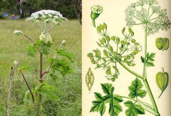 【植物形态】1.多年生高大草本,高1-1.5m。根长圆锥形,上部近方形,表面灰棕色,有多数较大的皮孔样横向突起,略排列成数纵行,质硬,较重,断面白色,粉性大。茎及叶鞘多为黄绿色。基生叶一回羽状分裂,有长柄,叶柄下部有管状抱茎、边缘膜质的叶鞘;茎上部叶二至三回羽状分裂,叶片轮廓国卵形至三角形,长15-30cm,宽10-25cm,叶柄下部为囊状膨大的膜质叶鞘,无毛或稀有毛,常带紫色;末回裂片长圆形,卵形或线状披针形,多无柄,长2.5--6cm,宽1-2.5cm,急尖,边缘有不规则的白色软骨质粗锯齿,具短尖头,基部两则常不等大,沿叶轴下延成翅状;花序下方的叶简化成无吉的、显着膨大的囊状叶鞘,外面无毛。复伞形花序顶生或腋生,直径10-30cm,花序梗长5-20cm,花序梗、伞辐和花柄均有短糙毛;伞辐18-40;总苞片1-2,通常缺;小总苞片5-10枚,线状披针形,膜质;花白色;花瓣倒卵形,先端内曲成凹头状;花柱比短圆锥状的花柱基长2倍。果实长圆形至卵圆形,黄棕色,有时带紫色,长4-7mm,宽4-6mm,无毛,背棱扁,厚而钝圆,远较棱槽中有油管1,合生面有油管2。花期7-8月,果期8-9月。2.祁白芷本种的植物形态与杭白芷基本一致。区别点在于:根圆锥形,表面灰黄色至黄棕以,皮孔样的横向突起散生,断面灰白色,粉性略差,油性较大。栽培于河北、湖南等地北方地区。