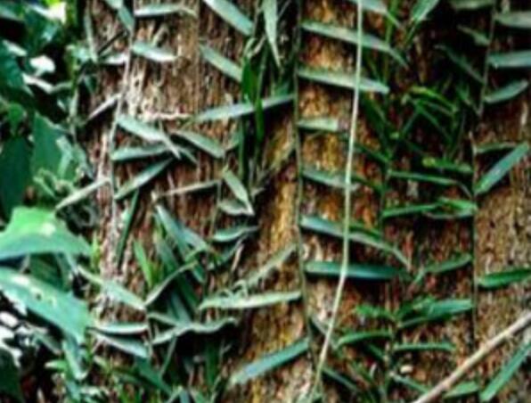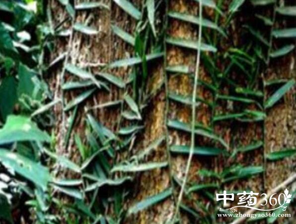 【原形态】百足藤,附生藤本,长1-20m。分枝较功,营养枝具棱,常曲折,节间长0.5-1.5cm,节上气生根长1-2cm,贴附于树上;花枝圆柱形,具纵条纹,节间长1-1.5cm,一般没有气生根,多披散或下垂。叶柄长楔形,先端微凹,长达13-15cm,宽1-1.5cm,幼枝上叶柄长2-3cm,宽4mm;叶片披针形,向上渐狭,长3-4cm,宽5-7mm,与叶柄皆具平行纵脉,细脉网结,但极不明显,幼枝上叶片较小,长1-2cm,宽3-4mm。总花序柄腑生和顶生,长约2-3cm;苞片3-5,披针形,长1-5cm,覆瓦状排列或较远离;花序柄细长,长11-13cm,基部有一长1-2cm的线形小苞片;佛焰苞绿色,线状披针形,锐尖,具长尖头;肉穗花序黄绿色,雄蕊黄色,雌蕊淡绿,细圆柱形,长5-6cm,果时伸长可达10cm,具醒;花密,花被片6,黄绿色雄蕊和柱头稍超出花被,花药黄色。浆时成熟时焰色,卵形,长约1cm。花期3-4月,果期5-7月。