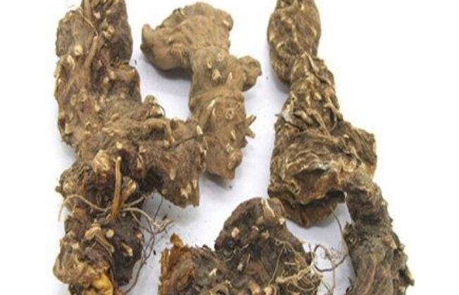 根茎呈结节状,长约6~10厘米,径约0.7~1.5厘米,鲜时浅黄色,干后呈棕黑色;表面平坦或微凹,上有几个小的凹点,下面具环纹。须根多数,长达20厘米,径约1毫米,有毛,鲜时浅黄色,干后棕黄色。质硬而脆,易折断。根茎断面黄绿色,角质;根的断面黄色,中央有圆点状中柱。气微,味苦。