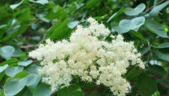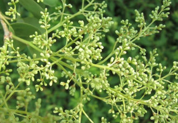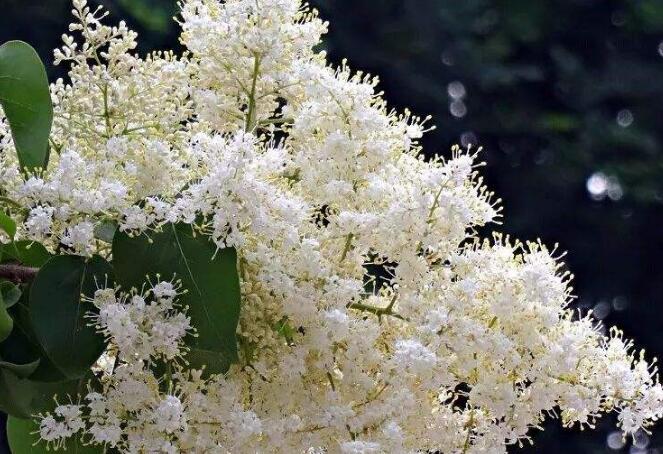 植物形态】灌木或小乔木。高3~8米。树皮暗灰褐色,有横纹,小枝灰褐色,皮孔明显,椭圆形,外凸。单叶对生,叶柄长约l厘米;叶片卵形或广卵形,长5~12厘米,宽3~9厘米,先端渐尖,或呈尾状,或钝,基部通常广楔形或近圆形,全缘;上面淡绿色,有光泽,下面灰绿色,叶脉明显突起。夏季开白色花,多花形成疏大顶生圆锥花序,长15~25厘米;小花梗长1~2毫米;萼钟状,4裂;花冠4裂,管部较萼略长;雄蕊2,花丝较花冠裂片约长2倍,伸出花冠外。蒴果长圆形,长约2.3厘米,常有小瘤突,熟时2裂;种子每室2粒,周围具纸质翅。