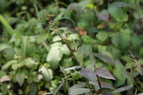 【原形态】毛臂形草 一年生草本。须根细弱。秆高10-40cm,基部倾斜,全株密被柔毛,尤以鞘口及边缘更密。叶舌短小,具长约lmm的纤毛;叶片卵状被针形,长1-4cm,宽3-10mm,两面密被柔毛,先端急尖,边缘呈波状皱折,基部钝圆。圆锥花序由4-8枚总状花序组成;总状花序长1-3cm;主轴与穗轴密被柔毛;小穗卵形,先端尖,长约2.5mm,被短柔毛或几无毛,小穗柄长0.5-1mm,有毛;第1颖长为小穗之半,具3脉,背部对向穗轴,第2颖略短于小穗,具5脉;第1外稃等长于小穗,具5脉,内稃膜质,狭窄,第2外稃革质,稍包卷内稃,具横细皱纹;鳞被2.膜质,折叠;花柱基分离。谷粒椭圆形,长约2mm。花、果期7-10月。