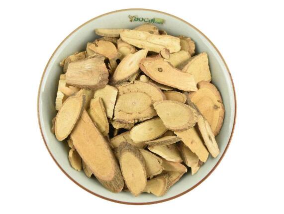 性状鉴别 根呈圆柱形,略弯曲,长约30cm,直径0.5-4.0cm,有的根头部直径可达8cm。表面灰棕色至深黄棕色,粗糙,有细纵纹及稍凸起的白色类圆形或长椭圆形皮孔。栓皮易脱落,露出棕褐色或浅红棕色的皮部。质坚硬,不易折断,断面皮部与木部界线明显,木部淡黄色,年轮显着。气微,味辛、苦,有辛凉感。根皮呈不规则长块状,厚5-(根)外形10mm,质坚硬,不易折断,横断面及纵切面均显颗粒状,黄棕色或棕褐色,内表面淡褐色,有纵向纹理。