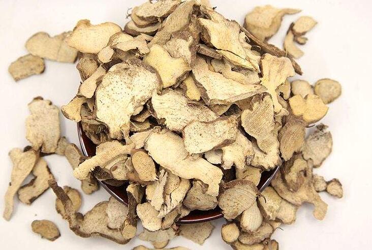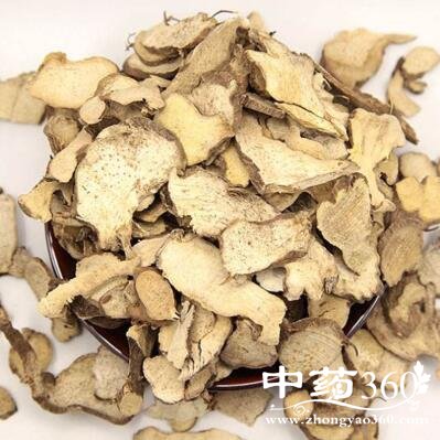 【药材性状】根茎竹节状,类圆柱形,有分枝,表面皱缩,常残留有茎枯萎疤痕及未除尽的细长须根。商品多为不规则的薄片,大小不一,厚约0.5毫米,边缘不整齐,有的有棕黑色或灰棕色的外皮。切面黄白色或淡灰棕色,平坦,细腻,有粉性及不规则的黄色筋脉花纹维管束,对光照视,极为显著。质松,易折断。气微,味辛、微苦。