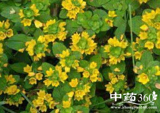 【原形态】多年生匍匐草本,茎基部节间短,常生不定根,上部及分枝上升,长6-50cm,圆柱形,密被多细胞卷曲柔毛;分枝纤细,有时仅顶端具叶。叶对生,茎端的2对间距短,近密集;叶柄长1.4-9cm;叶片卵形、阔卵形以至近圆形,近等长,长(0.7-)1.4-3(-4.5)cm,宽(0.6-)1.3-2.2(-3)cm,先端锐尖或钝,基部近圆形或截形,稀略呈心形,上面绿色,下面较淡,有时沿中肋和们脉染紫红色,两面多少被具节糙伏毛,稀近于无毛,近边缘有暗红色或有时变为黑色的腺点,侧脉2-4对,在下面稍隆起,网脉纤细,不明显。花2-4朵集生茎端和伎端或近头状的总状花序,在花序下方的1对叶腋有时具单生的花;花梗极短或长至2mm;花萼5深裂,长5-8.5mm,分裂近达基部,裂片披针形,宽约1.5mm,背面被疏柔毛;花冠黄色,内面基部紫红色;长9-11mm,基部合生部分长2-3mm,5裂(偶有6裂的),裂片卵状椭圆形至长圆形,宽3-6.5mm,先端锐尖或钝,散生暗红色或变黑色的腺点;雄蕊5,花丝下部合生成高约2.5mm的筒,分离部分长2.5-4.5mm,花药长圆形,长约1.5mm;子房被毛,花柱长5-7mm。蒴果球形,直径3-4mm,上半部具毛;花萼宿存。花期5-6月,果期7-10月。