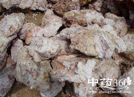 柴火灶中烧结的土块,用刀削去焦黑部分及杂质即得。