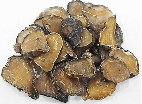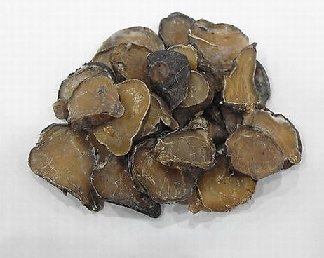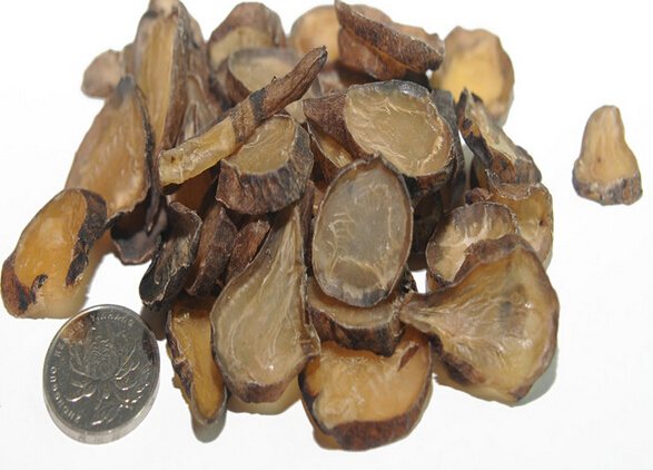 切制切薄片、晒干。除去皮、脐、切片。蒸透后切节极薄的顶刀片,晒干!