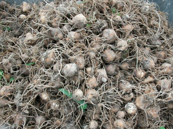 带根块茎作种栽种的当年可收获,不带根的多种1年。冬季倒苗后,挖起块茎,小的作种,大的加工作药。将块茎堆积发酵,使外皮皱缩易脱,装在箩筐里,放在流水中踩去粗皮,晒干。也可不去粗皮,切成2至3毫米厚的薄片,晒干。