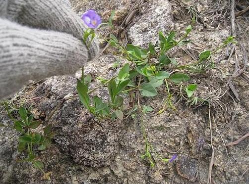 【原形态】一年生草。直立或倾卧发出弯曲上升的枝。根须状。茎枝略呈四有形,角上有棱,面上有沟,中部的节间较长,可达6cm,无毛。叶对生;基部者有短柄,上部叶无柄微抱茎;叶片菱状卵形至菱状披针形,长0.5-2cm,宽0.3-0.8cm,先端微尖,基部宽楔形,边缘具波状浅缺,小齿或全缘,质颇厚,两面无毛。花序近总状,顶生或腋生,花不超过10朵;苞片披针形,花梗细,长0.5-2.5;花萼狭钟状,裂片三角状卵形;花冠紫色或蓝紫色,长1.3cm以上,喉部渐扩大,上唇2裂,下唇较上唇大,3裂;雄蕊4,全育;柱头宽片状。蒴果椭圆形,比宿萼短。种子多数。花期5-7月,果期8-10月。