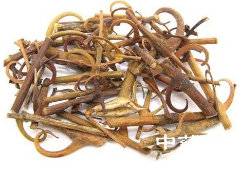 【药用部位】钩藤或华钩藤及其同属多种植物的带钩枝条。