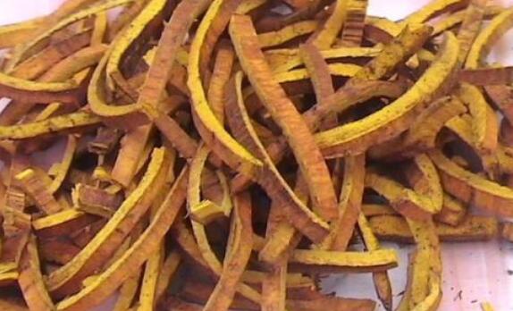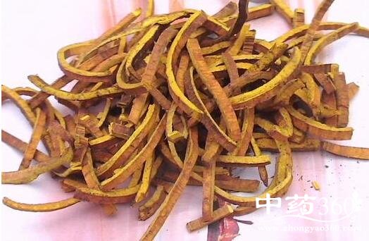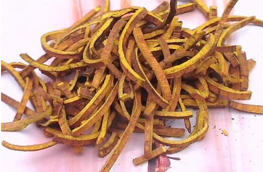 关黄柏:厚2——4mm。外表面黄绿色或淡棕黄色,较平坦,有不规则的纵裂纹,皮孔痕小而少见,偶有灰白色的粗皮残留。骨表面黄色或黄棕色。体轻,质较硬,断面鲜黄色或黄绿色。