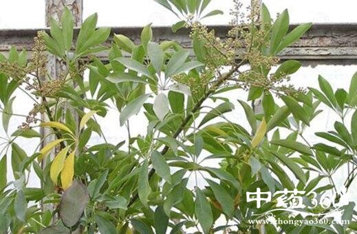 汉桃叶主产于中国广西,又名广西鹅掌柴、七叶莲、七多。茎和叶含有镇痛和治疗惊厥的有效成分为有机酸,作为中药材使用。性状鉴别:茎枝圆柱形,常斜切成厚片或段,长1~3cm,直径0.4~3cm。外表灰白色至淡黄棕色,具纵皱纹及点状皮孔,有时可见环状叶痕,栓皮常片状脱落。味微苦涩,温,有祛风止痛、舒筋活络功能。用于三叉神经痛、神经性头痛、坐骨神经痛、风湿关节痛及胃、肠、胆道疼痛等症。全年可采,切段晒干或烘干。