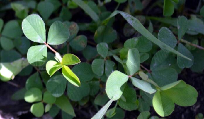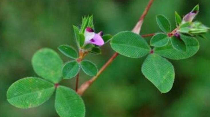 【植物形态】一年生草本植物。高10~30厘米。茎基部常铺地分枝略呈匍匐状,茎枝上有白色向下的柔毛。三出复叶互生,小叶长椭圆形或倒卵形,长0.5~1.5厘米,宽0.3~0.7厘米,先端有小尖头,主脉和叶缘有疏毛,托叶长卵形,宿存。花1~2朵腋生,淡红色,萼钟状,5深裂,花冠蝶形,雄蕊10,2体。荚果卵圆形,包于宿萼内,熟时褐色,外被细短毛。花期8~9月,果期9~10月。