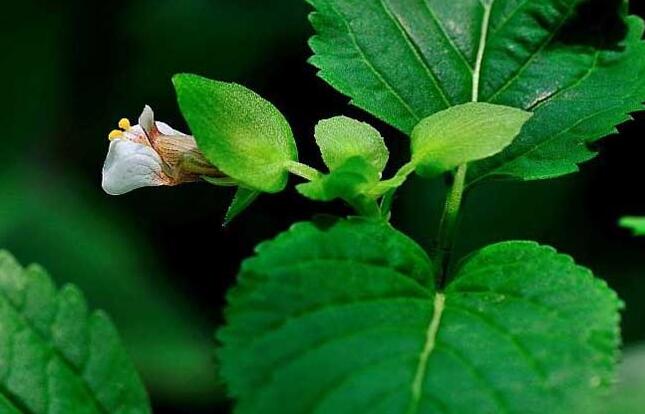 【植物形态】草本,长达1米,基部节上生根。枝被短糙毛。叶对生,卵形,有时近圆形,长达5.5厘米,宽达3厘米,先端急尖,边缘有圆钝锯齿,上面密被粗糙短毛,下面脉上有糙毛,侧脉约4~5对,叶柄长达1.8厘米为。花序总状,有4~8花。花梗长达1厘米,花萼长圆状卵形,在果时长达1.4厘米,侧方2片近线形,花冠白或红褐色,长约1.2厘米,花冠筒长约6.5毫米,中部稍细缩,下唇宽阔,长约6.5毫米,上唇直立,长约4.5毫米,基部很宽,向上变窄,近长方形,先端微缺。蒴果卵圆形,长5~6毫米。