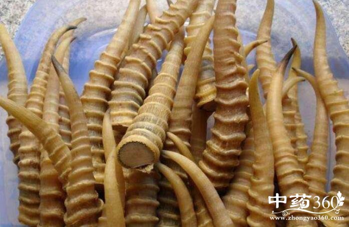 中药羚羊角为牛科动物赛加羚羊 Saiga tatarica Linnaeus 的角。主产于新疆、甘肃、青海、西藏、俄罗斯等地。全年均可捕促,但以秋季猎取最佳。粉碎成细粉,或镑成薄片、锉末或磨汁,生用。羚羊的角是名贵的药。