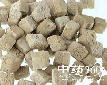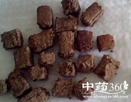 【药材性状】本品呈方形或长方形的块状,直径约3厘米,厚约1厘米,外表土黄色,粗糙。质硬脆,易断,断面不平整,类白色,可见未被粉碎的褐色残渣及发酵后的空隙。具陈腐气,味苦。以身干、陈久、无虫蛀、杂质少者为佳。