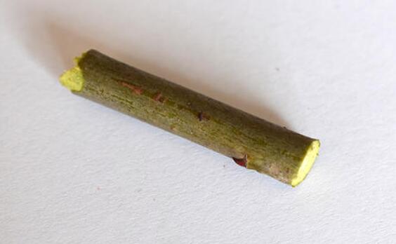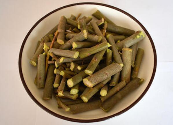 【药材性状】本品呈圆柱形,直径5~10毫米,表面微有纵皱纹,黄色。节间长0.5~5厘米,上有交叉排列的芽或残留的三角形瘢痕。质脆易断,断面不平坦,皮部薄而浅棕色,木部宽而黄白色,中央有黄白色髓部。气微,味微苦、涩。