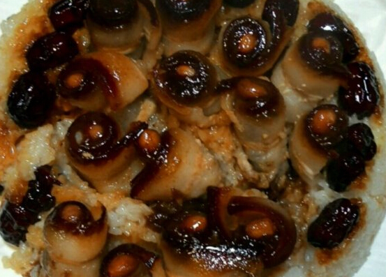 (2)将粳米和龙眼肉、红枣放入清水,大火煮沸后再用文火熬30分钟,直至米煮烂,加适量白糖。
