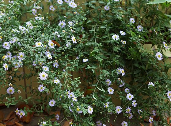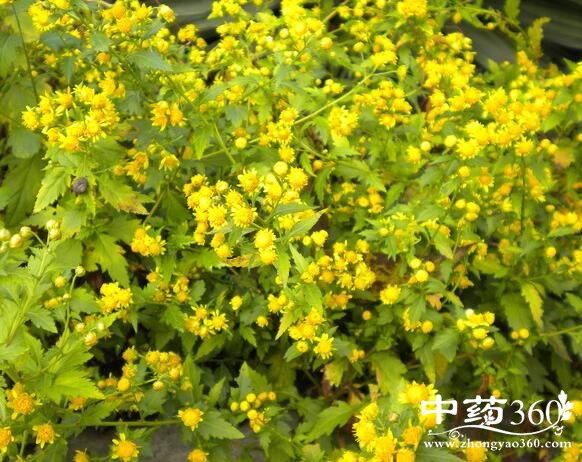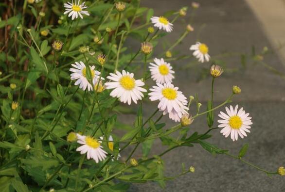 (方歌)清热解毒路边菊,能清疮疡火热毒,捣叶成糊加片糖,涂敷患处功推独,干根既能治闭经,还医白带与白浊。