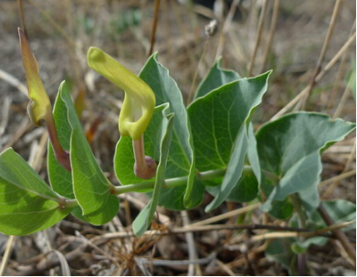 草质藤本。根圆柱形。茎柔弱,无毛。叶互生;叶柄长l-2cm,柔弱;叶片卵状三角形、长圆状卵形或戟形,长3-6cm,基部宽1.5-3.5cm,先端钝圆或短渐尖,基部心形,两侧裂片圆形,下垂或稍扩展;基出脉5-7条,各级叶脉在两面均明显。花单生或2朵聚生于叶腋;花梗长l-1.5cm;小苞片三角形,易脱落;花被长3-5.5cm,基部膨大呈球形,向上收狭成一长管,管口扩大成漏斗状,黄绿色,口部有紫斑,内面有腺体状毛;檐部一侧极短,另一侧渐延伸成舌片;舌片卵状披针形,顶端钝;花药贴生于合蕊柱近基部;于房圆柱形,6棱;合蕊柱先端6裂,稍具乳头状凸起,裂片先端钝,向下延伸形成波状圆环。蒴果近球形,先端圆形而微凹,具6棱,成熟时由基部向上沿空间6瓣开裂;果梗长2.5-5cm,常撕裂成6条。种子扁平,钝三角形,边线具白色膜质宽翅。