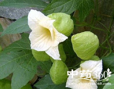 【原形态】木鳖子,又名:木鳖藤。 多年生草质藤本,具膨大的块状根。茎有纵棱;卷须粗壮,与叶对生,单一,不分枝。叶互生,圆形至阔卵形,长7—14厘米,通常3浅裂或深裂,裂片略呈卵形或长卵形,全缘或具微齿,基部近心形,先端急尖,上面光滑,下面密生小乳突,3出掌状网脉;叶柄长5—10厘米,具纵棱,在中部或近叶片处具2—5腺体。