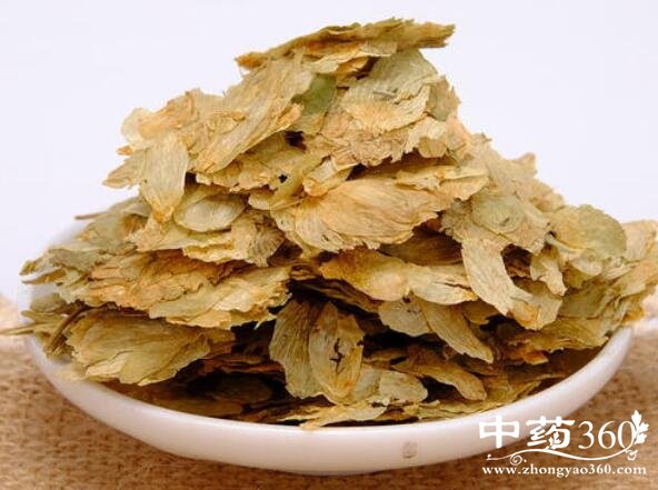 【药材性状】松球形,长3~6厘米,黄绿色,有多数叶状苞片,苞片椭圆形,覆瓦状排列,饮片内侧基部生有l对雌花,无花被,花柱2裂,具大量黄粉。体轻,质脆。气香,味苦。