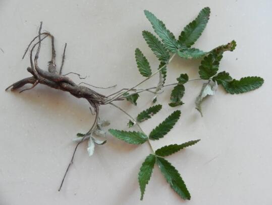 治脾胃虚弱白带:翻白草配浮萍参、鸡屎藤(鸡矢藤)、隔山撬(隔山消)、糯米草根、土茯苓、苦荞头(金荞麦)、仙鹤草。水煎服。(《成都中草药》)