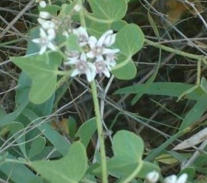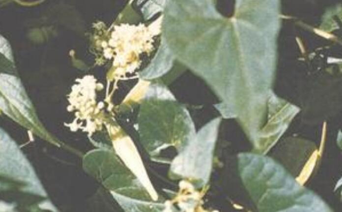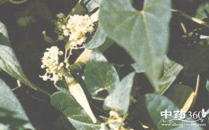 【植物形态】多年生草质藤本,长2~5米。根单一或数条,圆柱形,肥大,外皮灰黑色或黄褐色,直径约8毫米,内面白色,折断有乳汁。茎纤细坚韧,圆柱形,绿色,被2列毛。叶对生;具长柄,叶柄内有2枚小形叶片;叶片三角状卵圆形或卵状披针形,长7~10厘米,宽4~8厘米,先端长渐尖,基部深耳状心形,叶耳圆形,下垂,全缘,两面均被柔毛。伞形聚伞花序腋生,着花20余朵;花萼5,外面被微毛,基部内面有腺体5个;花圆形,白色,花冠裂片5,内被微毛;副花冠杯状,比合蕊柱略长,裂片中间有1小齿,或有褶皱或缺;花粉块每室1个,下垂;柱头先端略为2裂。蓇葖双生或仅l枚发育,短披针形,向端部渐尖,基部较狭,外果皮有直条纹。种子卵形;种毛白色绢质。花期6~10月,果期8~10月。
