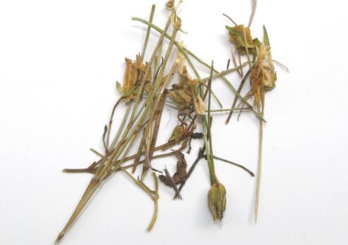 【药材性状】长15~45厘米。根长圆锥形,长2~7厘米,直径约0.2厘米,有的有分枝;表面黄色或黄棕色。茎四棱形,棱角具极狭的翅,直径0.1~0.2厘米;表面黄绿色或黄棕色,下部常显红紫色,断面中空。叶对生,无柄;叶片多皱缩或破碎,完整者展平后呈条形或狭披针形,长1~4厘米,宽0.2~0.7厘米。圆锥状聚伞花序,萼片4,条形,黄绿色;花冠4,深裂,黄色,裂片卵状披针形,内侧基部具2腺窝;雄蕊4。蒴果狭卵形,种子多数,细小,棕褐色。气微,味苦。