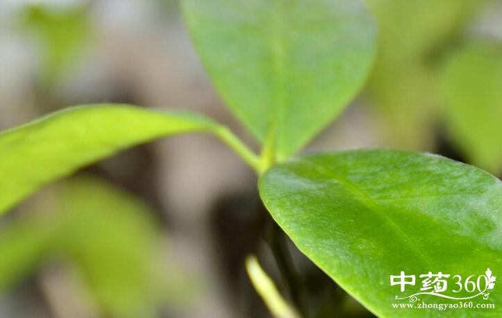 干燥的叶茶褐色,多呈不规则卷曲状,展开后呈倒卵状长圆形,长3~8厘米,宽2~4厘米,先端短尖,基部稍狭,边全缘,革质。气微,味淡。产广东、广西等地。