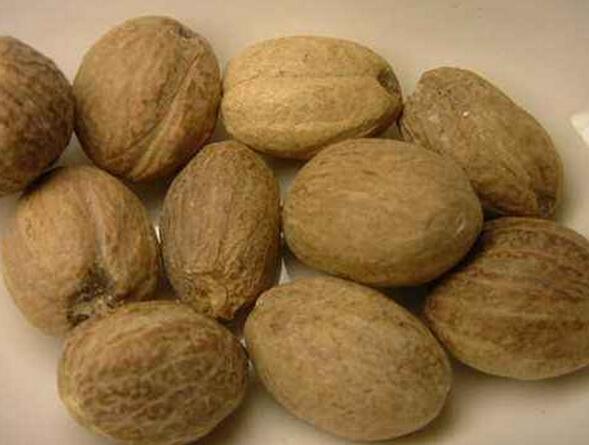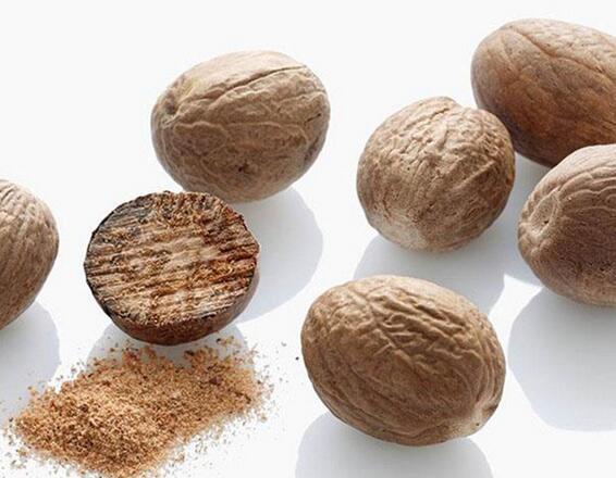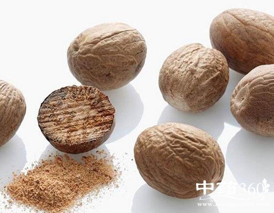 ②治脾虚泄泻、肠鸣不食:肉豆蔻一枚,剜小窍子,入乳香三小块在内,以面裹煨,面熟为度,去面,碾为细末。每服一钱,米饮送下,小儿半钱。(《杨氏家藏方》肉豆蔻散)