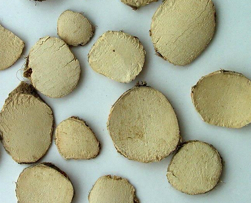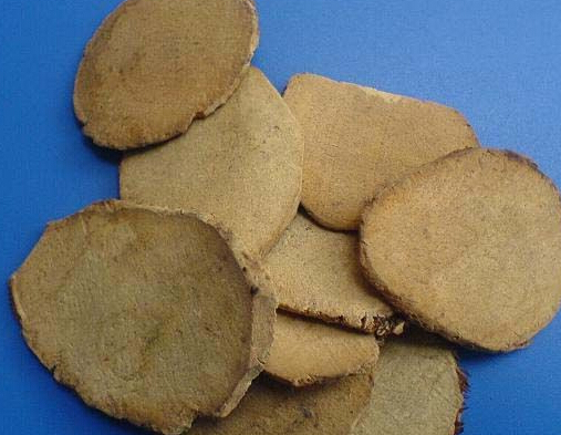 【鉴别】本品横切面:皮层为通气组织,薄壁细胞分枝状,枝端彼此相连,形成大的细胞间隙;内皮层细胞排列紧密。中柱薄壁细胞类圆形,壁略厚,内含淀粉粒;维管束外韧型及周木型,散列,导管非木化。皮层及中柱均散有分泌细胞,内含棕红色分泌物。