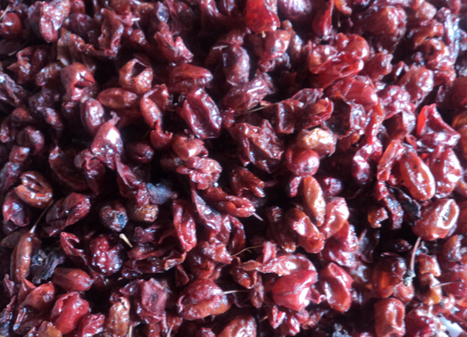 (3)核桃去壳将核桃肉连衣倒入大磁盘内,加入五味子浓汁,浸泡半小时,然后将山萸肉倒入拌匀,上面放冰糖,磁盘加盖。