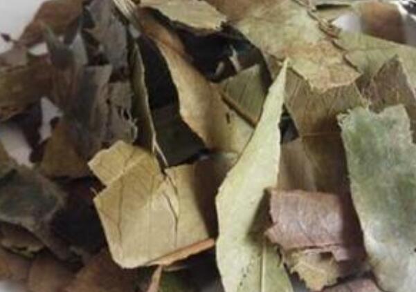 【药材性状】本品呈长椭圆形或倒卵状椭圆形,长8~15厘米,宽2~6厘米;先端尖或突尖,基部近圆形或楔形,边缘具细密的锯齿,齿端棕色,但在幼时及萌芽枝上的叶缘具芒状锯齿;上面棕色或棕绿色,无毛,羽状脉,中脉凹入。下面中脉明显突出。叶片革质而脆。气微,微涩。