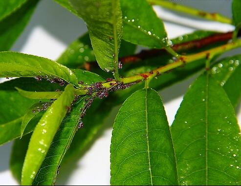 不同品种的桃树叶浸液(1%)杀灭孑孓的效果基本一致,能使孑孓在24小时内死亡95%以上;低浓度(0.25~0.5%)浸液作用不显著;鲜叶与干叶疗效相似,对库蚊、中华按蚊、骚扰阿蚊等蚊蚴皆有作用。有人试验证明,桃树叶可代替氯仿或其他麻醉药毒杀按蚊;嫩叶比老叶好,鲜叶比陈叶好,叶片搓碎比浸溃好。因桃叶含配糖体,搓碎时经酶作用可放出氢氰酸。用1:100以上稀释度的桃树叶煎液在体外直接镜检或试管内培养1、6、12、24或48小时后观察,有杀灭钩端螺旋体的作用。