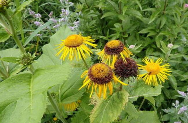 【原形态】多年生草本,全株被毛。茎直立,有纵沟纹。基生叶丛生,具长柄,边缘有锯齿,上面粗糙,下面密被绒毛;茎生叶较小,近无柄,叶片长圆形,上部叶基部抱茎。头状花序排成总状,总苞片4~5层,边缘为舌状花,黄色,中央为管状花。冠毛浅黄色,呈放射状。花期6~7月,果期7~9月。