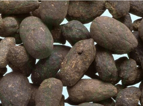 1. 灵脂块,系由许多粪粒凝结而成,不规则的块状,大小不一。表面黑棕色、黄棕色、红棕色或灰棕色,凹凸不平,有的有油润性光泽;粪粒呈长椭圆柱形,其表面常碎裂,呈纤维性。体轻,质较硬,但较易破碎,断面不平坦,可模糊地看出粪粒的形状,有时呈纤维性。气腥臭,味苦。以块状、黑棕色、有光泽、油润而无杂质者佳。