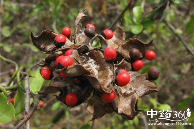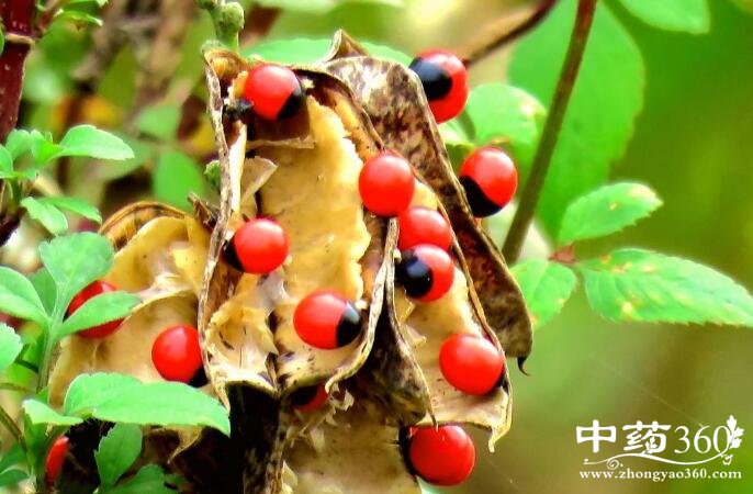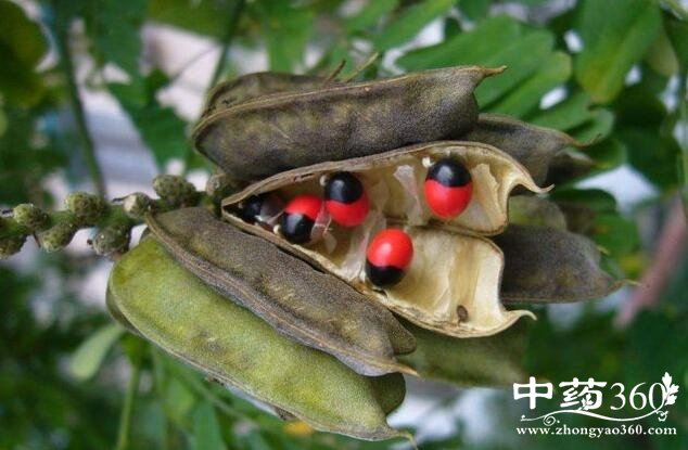 【来源】为豆科植物相思子的种子。夏、秋季分批摘取成熟果荚,晒干。打出种子,除净杂质后再晒干。