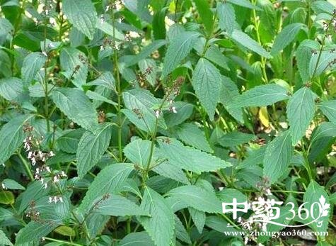 【植物形态】茎叶对生,卵圆形或卵圆状披针形或披针形,长3.5-10厘米,宽1.5-4.5厘米,先端近渐尖,基部楔形,边缘具粗大内弯的锯齿,草质,上面暗绿色,下面淡绿色,两面仅脉.上密被微柔毛,余部无毛,散布淡黄色腺点,侧脉每侧4-55与中脉在两面微隆起,在边缘之内网结,其间平行细脉多少明显;叶柄长0.5-3.5厘米,上部具渐宽大的翅,腹凹背凸,密被微柔毛。圆锥花序生于茎及分枝顶上,长10-20厘米,下部常分枝,因而植株上部全体组成庞大疏松的圆锥花序,圆锥了毛序由具5至多花的聚伞花序组成,聚伞花序具梗,总梗长0.-5-1.5厘米,花梗长1-3毫米,总梗、花梗与序轴均密被微柔毛;苞叶在下部者叶状,具短柄,长超过聚伞花序,向上渐变小呈苞片状,披针形至线状披针形,长约与总梗相等,苞片及小苞片细小,长1-3毫米,被微柔毛。花萼钟形,长约1.5毫米,外密被灰白微柔毛,其间夹有腺点,内面无毛,萼齿5,长三角形,近等大,长约为萼长之半,果时花萼增大,呈阔钟形,基部多少呈壶状,长约3毫米,脉纹明显。花冠紫色,长达6毫米,外被短柔毛,内面无毛,冠筒长约3毫米,基部上方浅囊状,至喉部宽约1.2毫米,冠檐二唇形,上唇外反,长约2毫米,先端具相等4圆裂,下唇阔卵圆形,长约3毫米,内凹。雄蕊4,内藏。花柱丝状,内藏,先端相等2浅裂。花盘环状。成熟小坚果阔卵圆形,长1.5毫米,顶端圆,具腺点及白色髯毛。花、果期8-9月。