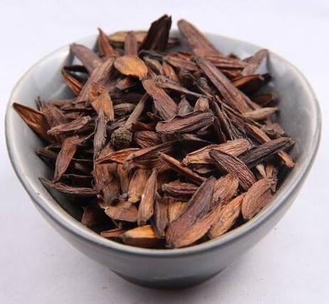 【药材性状】呈披针形,长2~2.5厘米,宽5~7毫米,先端尖,有柱头残基;基部变狭,可见着生在花盘上的椭圆形凹点痕,两边有翅。表面棕色至棕黑色,微有光泽,有纵皱纹,有时可见数条角棱和黑色斑点。质韧,不易折断,断面纤维性,内有种子1粒,干缩成细条状。气微,味苦。