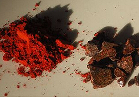 松香、颜料、石粉、泥土等混合伪制备竭:血竭呈不规则形或似血竭形状。表面暗红色,略有光泽,用刀刮之起白色的粉痕。
