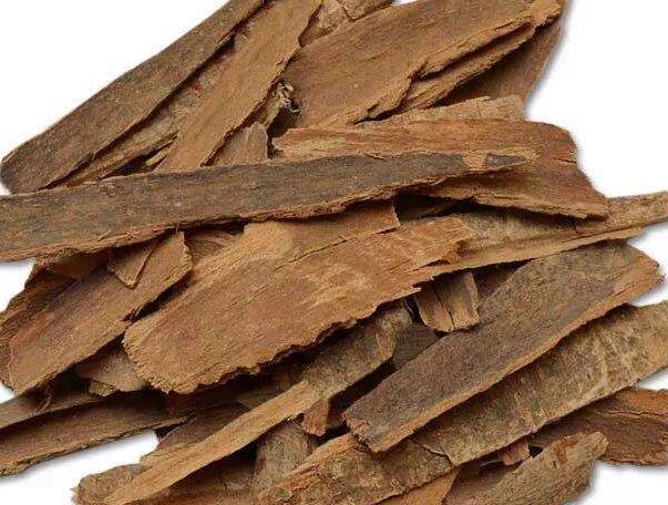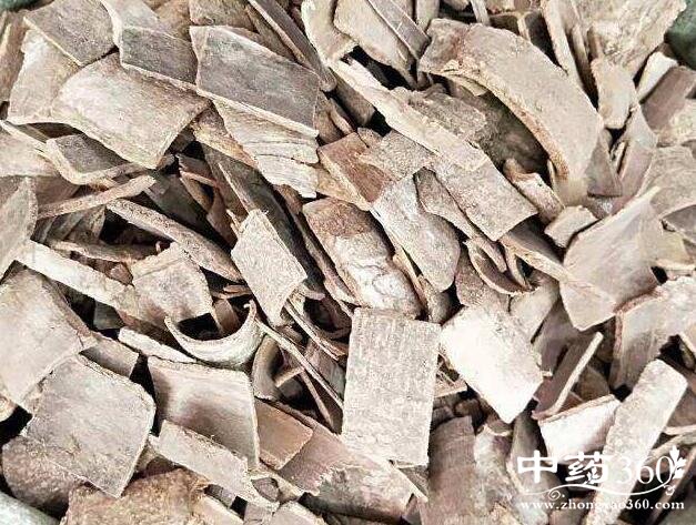树皮呈卷筒状或不规则板块状,长30-50cm,厚2-8mm。外表面灰白色或暗灰色,粗糙,常有地衣斑,具类圆形或横向长圆形皮孔。内表面灰黄色或灰棕色,具细纵纹。质脆,易折断,断面不平坦,纤维性。气微香,味苦、涩以皮薄、均匀、卷筒状者为佳。